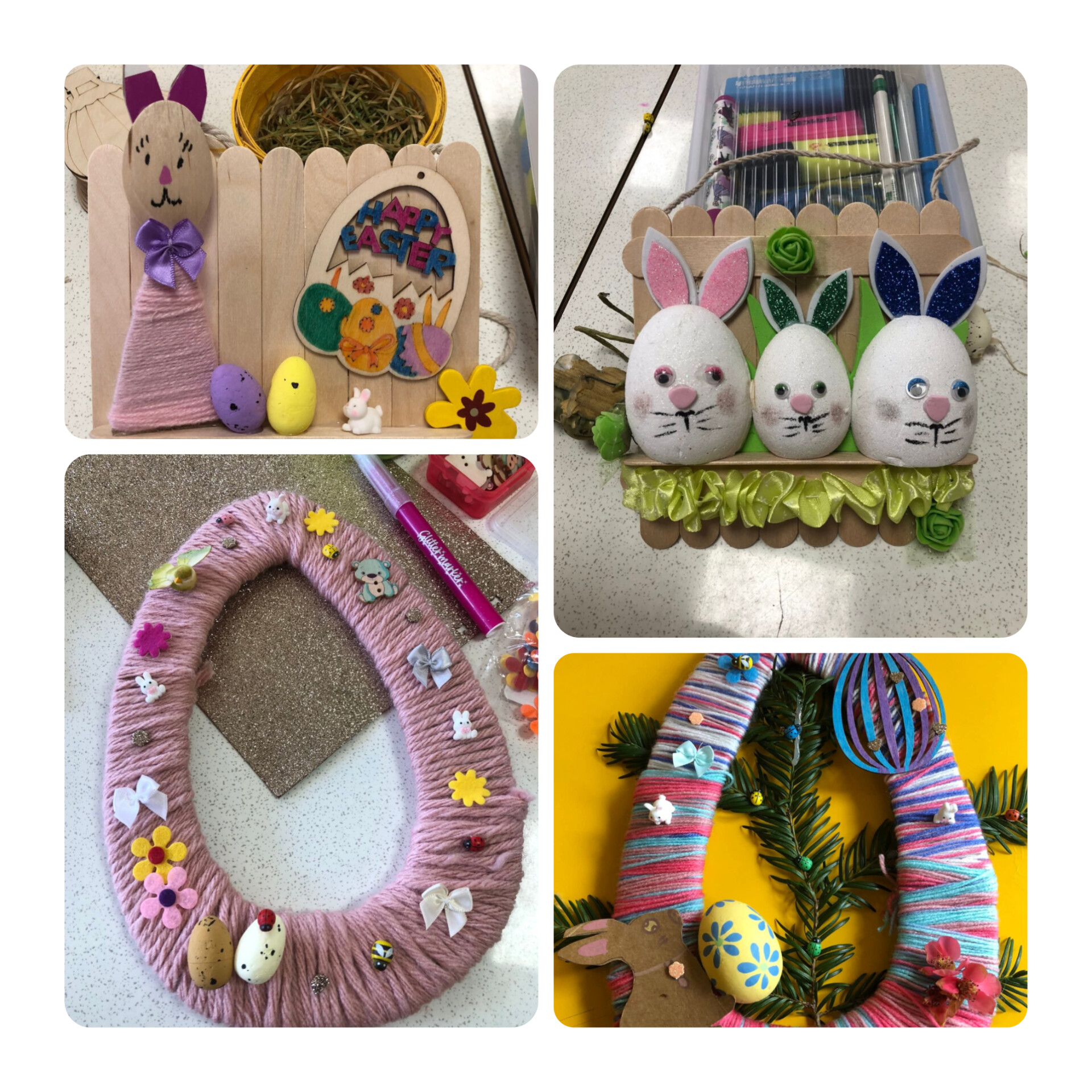 L’atelier tricotin du 1er Avril s’est transformé en atelier déco Pâques…chaque enfant à crée sa propre suspension, on a découpé, collé, inventé, colorié collé….un bel atelier ou 12 enfants de Meslieres, Glay et Dannemarie on participé et sont repartis chacun avec leur création .un bel après midi qui s’est terminé par 2 très bons gâteaux….chocolat et citron accompagné d’une boisson sucrée. Merci aux mamans pour ce délicieux goûter….et bonnes vacances de Pâques à nos petits artistes . À bientôt. Laurence